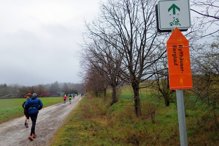 Auf dem Halbmarathonkurs gibt es im Verhältnis zum Marathon weniger Straße und Asphalt. Bei den Höhenmetern stehen laut meiner Uhr den 480 Metern beim Halbmarathon 790 Meter beim Marathon gegenüber. Rund zwei Drittel der Halbmarathonstrecke sind mit der beim Marathon identisch. Natürlich ist der Marathon die Königsdisziplin beim KBL. Nicht nur wegen seiner doppelten Länge, sondern auch weil er durch die Königspfalz Tilleda und zum Kyffhäuser Denkmal hochführt. Und das Hochlaufen beim Marathon durch das „Langes Tal“ an der Wolweda zum Kyffhäuser Denkmal empfand ich im letzten Jahr ein gutes Stück anspruchsvoller als die schwerste Passage beim Halben heute.
