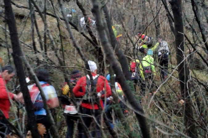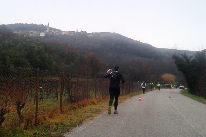 Der Moderator sprach nur italienisch, aber wir waren gut vorbereitet und so guter Dinge, so dass wir keine Übersetzungshilfe brauchten. Unsicher waren wir nur noch etwas wegen der Pflichtausrüstung. Klar, Verbandspäckchen mit Rettungsdecke, ein, zwei Gels oder Riegel, Getränke, wetterfeste Oberbekleidung bei etwa drei Grad und lange Hose (ich lief in kurz). Aber musste man jetzt eine Stirnlampe mit sich führen oder nicht? Das Zeitfenster für den Lauf war mit 18 Uhr 30 angegeben. Schaff ich doch locker, dachte ich mir und führte nur eine zwar helle, aber kleine Lampe mit mir, die aus dem Campingbedarf stammt. Egal, es wurde nicht kontrolliert, auch nicht während des Laufs und pünktlich mit dem Glockenschlag ging es los.