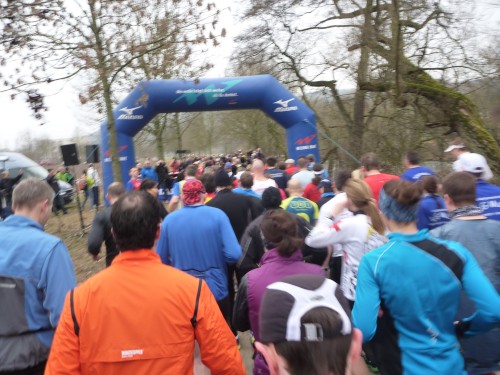 Immer mehr Läufer treffen ein, erst jetzt registriere ich, was noch neu ist: 10 Km-Läufer und Halbmarathonläufer gesellen sich zu den Marathon- und 50km-Ultraläufern. Also zügig nach hinten in die ruhigeren Startbereiche. Bin noch stark verpennt, ist auch erst 10 Uhr. Dann geht´s auch schon los, lahnabwärts.