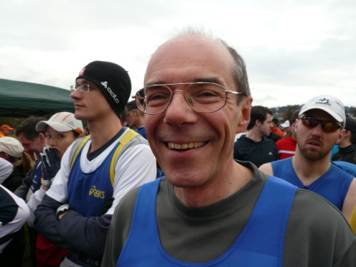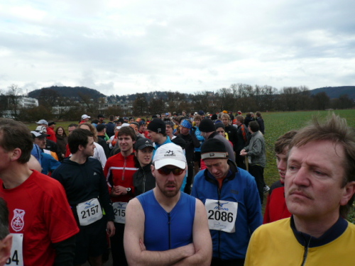 Eng geht es nach dem Startschuß zunächst zu, bis alle das Zeitmeßgate durchlaufen haben. Aber was soll’s – erstens haben wir eine Nettozeitnahme und zweitens läßt es die Masse der Ultraläufer, ich auf jeden Fall, eh etwas ruhiger angehen. Ich muß das auch, denn witterungs- und daher auch teilweise unlustbedingt habe ich seit Kevelaer Anfang Januar keinen Lauf mehr über zwei Stunden oder 21 km absolviert. Das werden sicher herbe letzte vier Pendelrunden werden. Aber mein Weib hat wie immer recht: Ich mache ja alles freiwillig. So laufe ich mit angezogener Handbremse los.