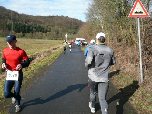 Normalerweise: Vermessener 10km-Rundkurs beiderseits der Lahn. Durchgehend asphaltiert, flach. Die fehlenden Meter nach zwei bzw. vier Runden werden auf einer Pendelstrecke absolviert. Die diesmal gelaufene Ausweichstrecke beträgt vermessene fünf km, ist optisch allerdings weniger reizvoll.