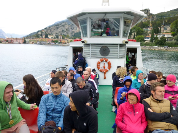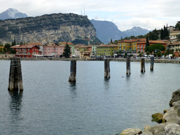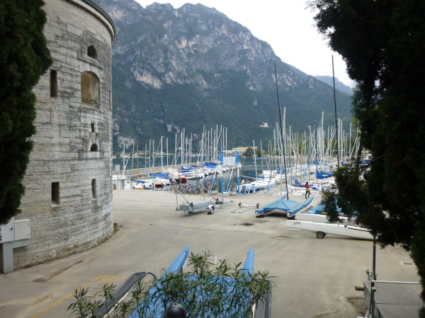 Dass Torbole einer der bekanntesten Namen am Gardasee ist, liegt allerdings weniger am Ortsbild. Das ist eher, sagen wir mal: Durchschnitt. Einen Namen hat sich der Ort vielmehr als „das“ Surfer-Mekka Mitteleuropas gemacht. Besonders hier entfalten die durch die im Norden fjordartige Verengung des Sees angefachten Winde ihre Wirkung, und das mit einer Regelmäßigkeit, nach der man die Uhr stellen kann. So bläst früh morgens von Norden her der kühle Vento, während ab Mittag bis zum Sonnenuntergang die warme Ora aus dem Süden die Windherrschaft übernimmt. Den Winden ist auch zu verdanken, dass nicht selten über dem See die Sonne scheint, während die umliegenden Berge wolkenverhangen sind. Nun ja: Heute ist das allerdings nicht so. Wolken bedecken den Himmel in einmütiger Geschlossenheit. Aber die Sicht, die ist dennoch hervorragend.