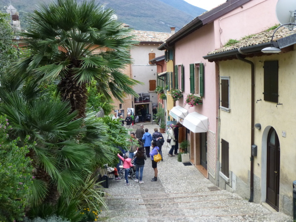 Immer näher rückt Torbole, immer mehr Details werden sichtbar. Teile der Altstadt mit ihren in rot- und gelbgetöneten Fassaden scheinen aus der Ferne betrachtet förmlich im Fels zu kleben. Die Gardesana führt uns mitten ins Herz des Ortes hinein.
