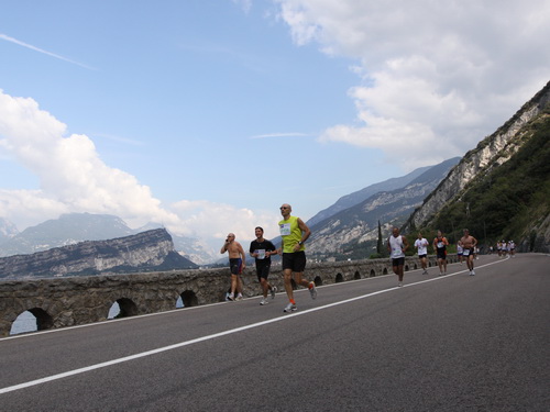 Vento (Nordwind) und Ora (Südwind) machen den Nordteil des Gardasees zum Paradies für Surfer und Torbole, das die Marathonis bei Km 27 erreichen, ist das Zentrum. Heute gehört die Aufmerksamkeit allerdings den Läuferinnen und Läufer, die scharenweise um den Kreisel und dann auf der Gardesana Orientale, der östlichen Uferstraße, südwärts rennen.
