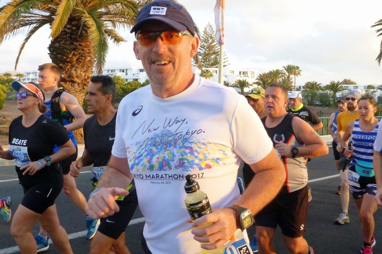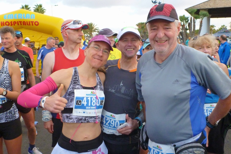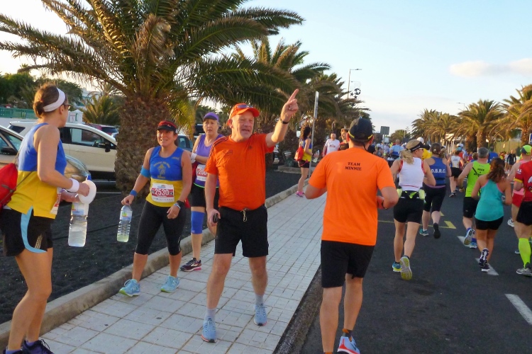 Ein Läufer trägt ein Hemd des Lwt Koblenz. Olli freut sich, uns zu treffen. Er konnte nach Lektüre des letztjährigen M4Y-Berichts seine Frau überzeugen, auf Lanzarote einen Urlaub zu verbringen. Da bin ich auch ganz stolz und hoffe, dass seine Erwartungen erfüllt werden.