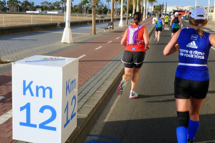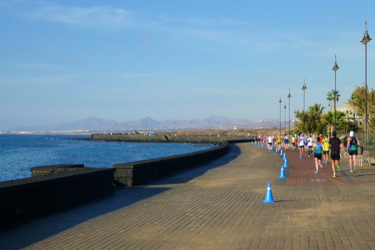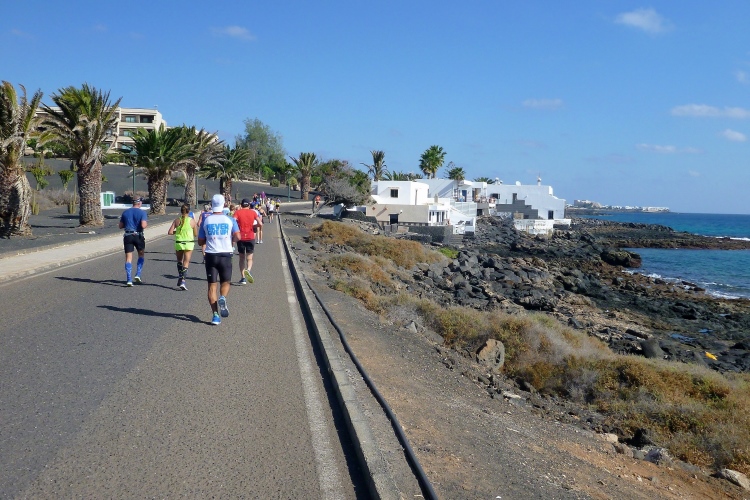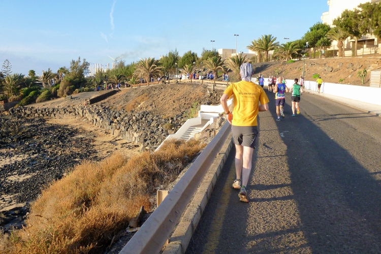 Die Marathonstrecke ist schnell beschrieben: Wir starten im Osten vor dem Sands Beach Hotel, laufen an der Küste bis Matagorda, dem Beginn des Ferienortes Puerto del Carmen, und wieder zurück. Mitkommen werden auf dem Rückweg die Halbmarathonis sowie die 10k- und 5k- Läufer. Für sie gibt es Shuttlebusse zu den Startpunkten.