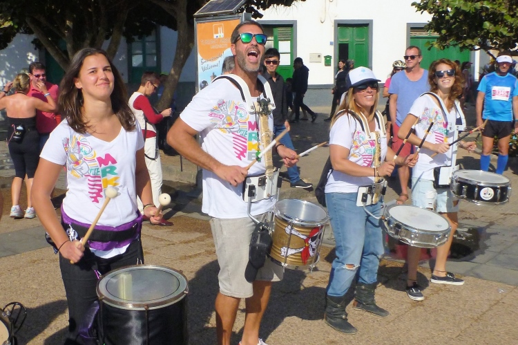 Die Häuser am Charco leuchten weiß im Sonnenschein. Dort warten die 10-km-Läufer auf ihren Einsatz. Eine der insgesamt sechs Zeitmessungsstellen befindet sich hier. Auch das englische Läuferpärchen, das wir 2016 im Hotel kennengelernt haben, ist wieder dabei. Eine Sambatruppe heizt uns ein. Noch zehn Kilometer. Hinter den Hafenkneipen geht es ordentlich bergauf. Viele Halbmarathonis überholen mich nun sehr schnell, ein paar Marathonis ziehen langsamer vorbei, wobei auf diesem letzten Abschnitt noch einige Steigungen warten. Insgesamt sind 150 Höhenmeter zu überwinden.