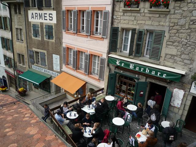 Es macht Spaß, hier durch die krummen, alten Gassen zu bummeln, sich vom bunten Treiben und dem französischen Charme des alten Lausanne gefangen nehmen zu lassen. Unbedingt sollte man von hier aus der historischen, überdachten Holztreppe (Escaliers du Marche) bis zur mächtigen Kathedrale Notre Dame (immerhin die größte der Schweiz) auf der Hügelspitze folgen. Der gotische Prachtbau und der Panoramablick über Lausanne sind dieses kleine Kraftopfer allemal wert. Zur Belohnung kann man sich auf dem Rückweg eine heiße Schokolade im urigen Cafe “Le Barbare” gönnen - man kann es nicht verfehlen.