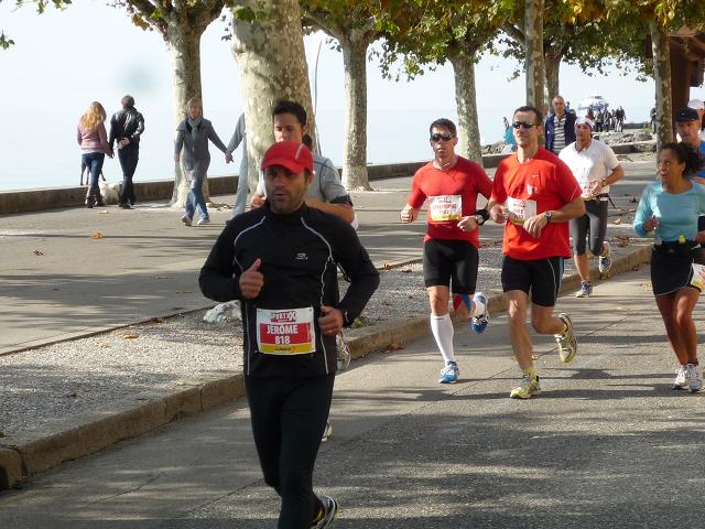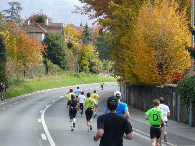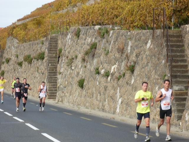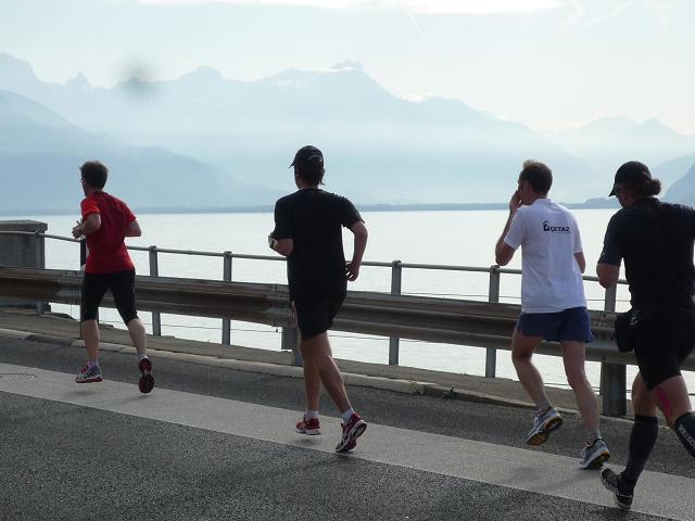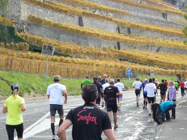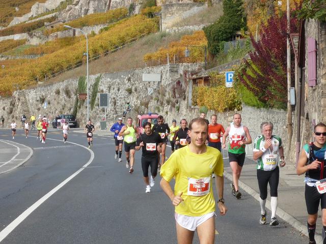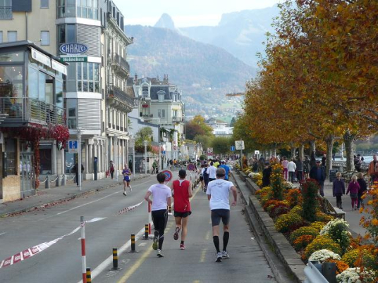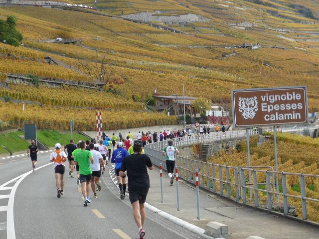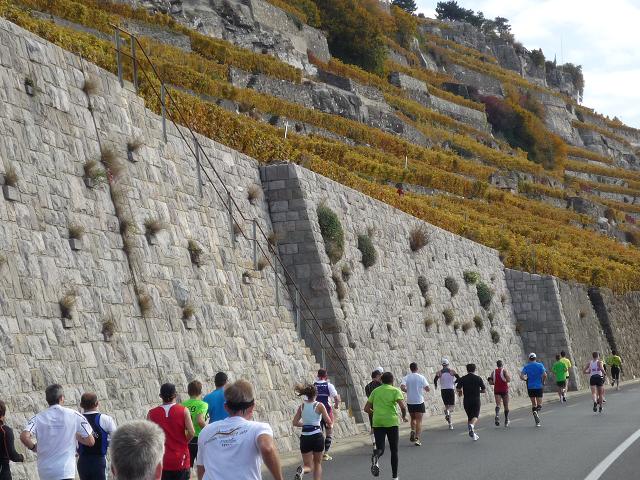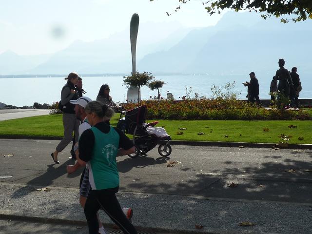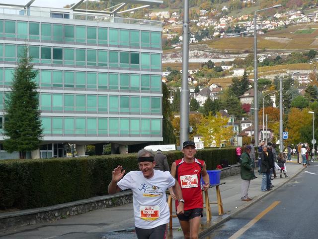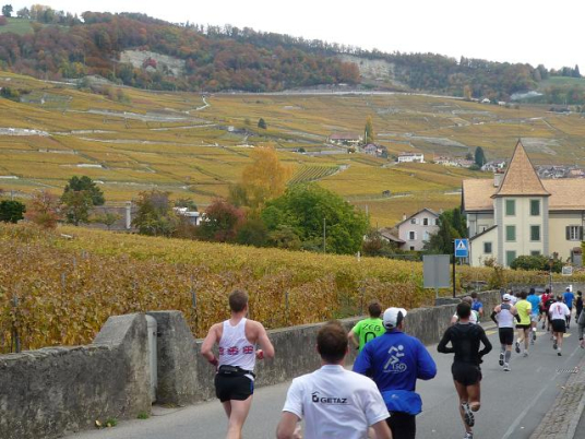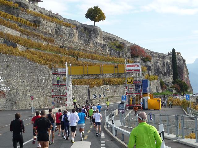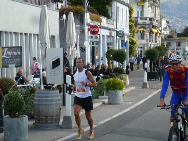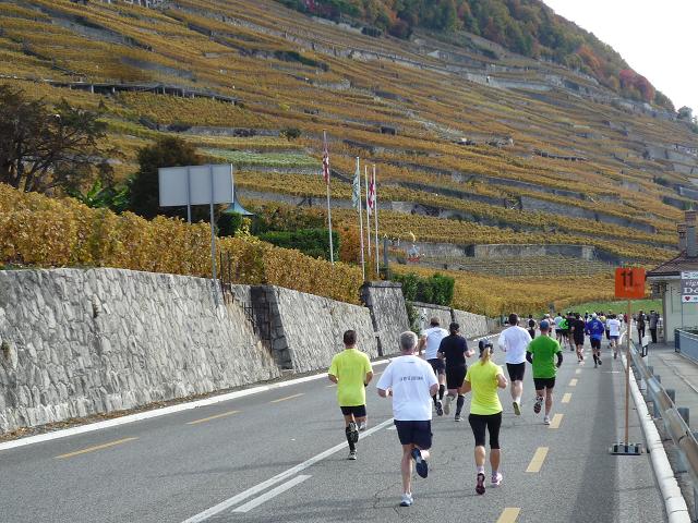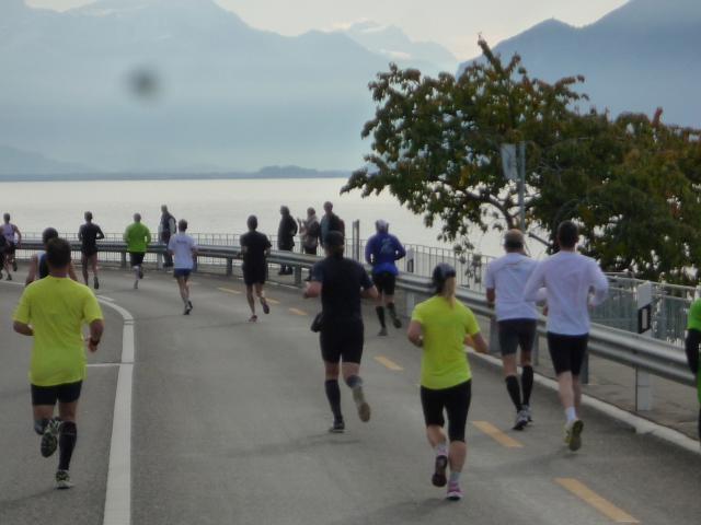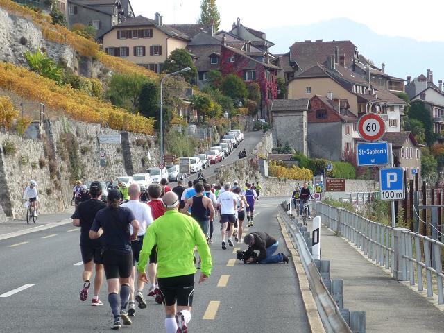 Übergangslos führt die Strecke aus Vevey hinaus und in den Nachbarort La Tour-de-Peilz hinein. In La Tour-de-Peilz ist der Startpunkt des Halbmarathon. Mit fast 4.800 Anmeldungen ist der „Halbe“ die beliebteste Distanz beim Lausanne Marathon. Da der Start erst um 13.30 erfolgt, kommen sich die auf dem gleichen Kurs laufenden Halb- und Vollmarathonis aber praktisch nicht ins Gehege.