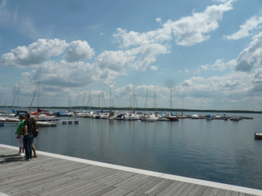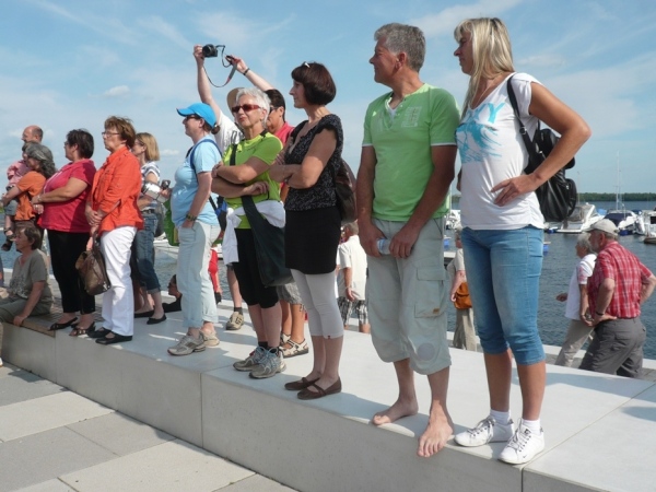 17:00 Uhr, Startschuss und das Feld setzt sich am Hafenanleger über die Strandstraße in Richtung Großkoschen in Bewegung. Der neue Stadthafen (Baukosten 13 Mill. €) wurde erst am 23. April nach fast 2jähriger Bauzeit eröffnet und hat über 100 Boots-Liegeplätze sowie eine 80m lange schwimmende Seebrücke.