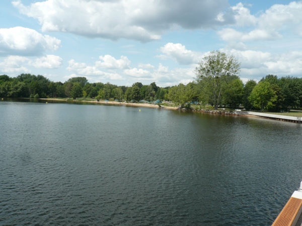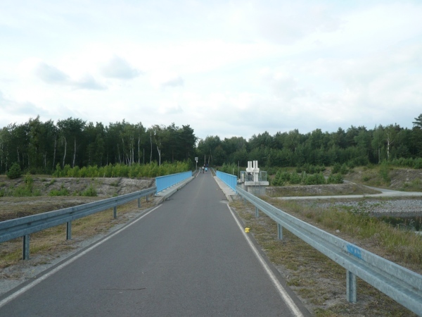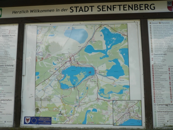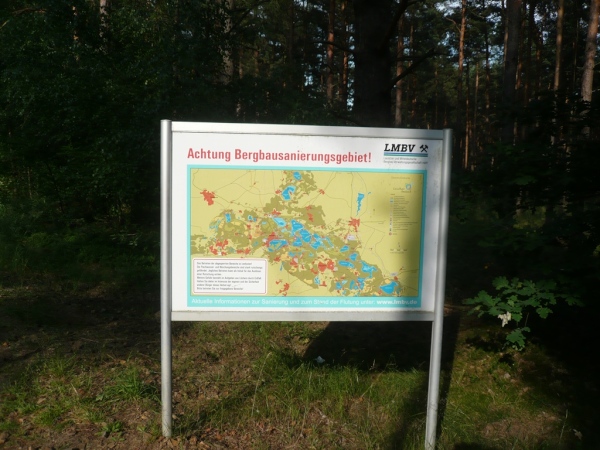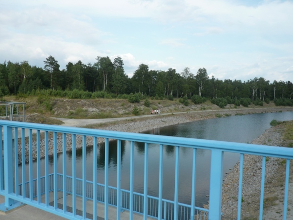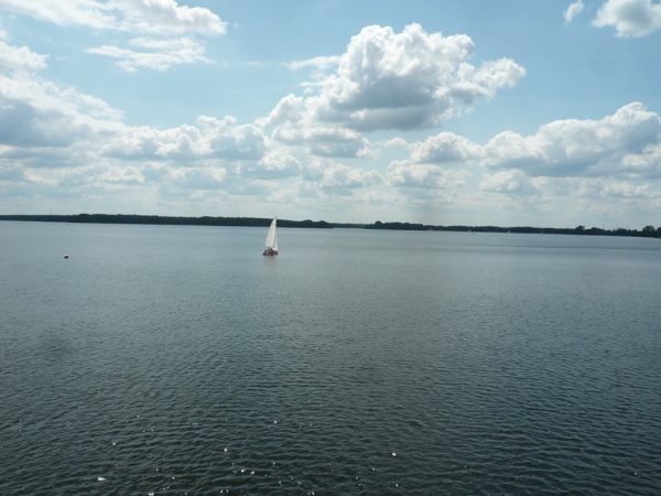 Rechts von uns liegt der große Senftenberger See, der einer der vielen künstlich angelegten Seen im Lausitzer Seenland ist. Zwischen Nov. 67 und Nov. 72 wurde das ehemalige Braunkohle-Tagebaubecken Niemtsch über eine Fläche von 1300 Hektar geflutet. Der bis zu 25m tiefe See ist einer der größten künstlich angelegten Seen Deutschlands.