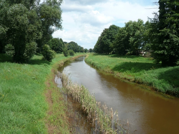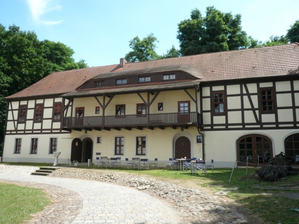 Wir erreichen Lieske, sehen aber leider nichts vom Ort, denn die Laufstrecke führt über den Uferradweg. Auch hier lebten früher überwiegend Sorben. Als Bauern mussten sie den Mist aus ihren Schafställen in die Weinberge der sogenannten Hörlitzer karren.