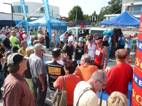 Ab 16 Uhr kann man seine Startunterlagen im Meldebüro am Hafenanleger abholen. Das geht alles routiniert und flott. Dann heißt es passende Laufkleidung und Startnummer anlegen. In den Voranmeldelisten hatten sich rund 100 Marathonläufer und rund 50 Run&Biker-Paare angemeldet.