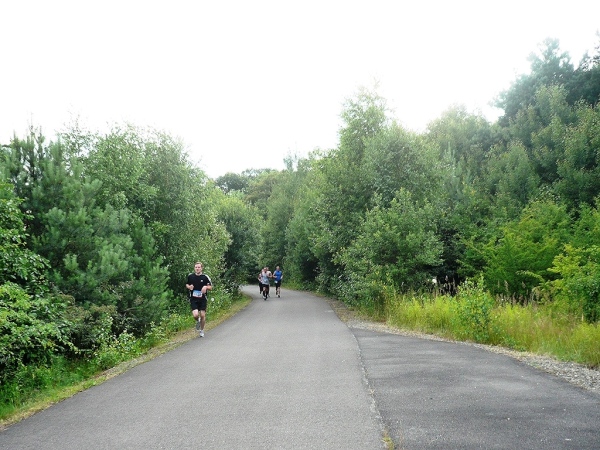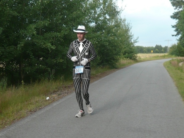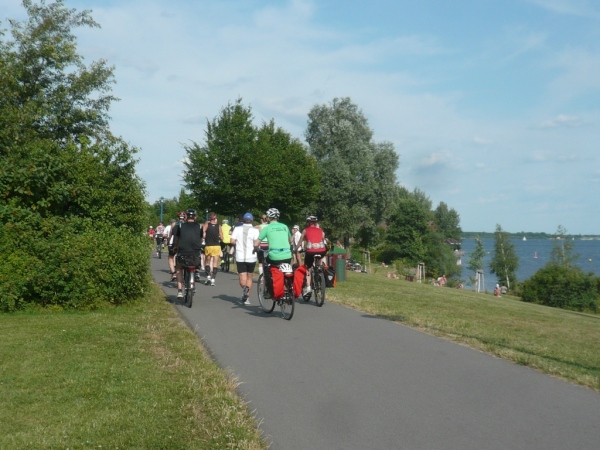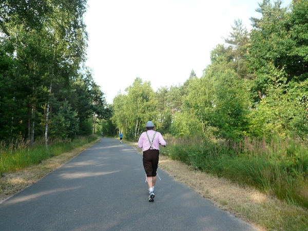 Wir kommen an die Wende bei 5km und folgen weiter dem Fuß- und Radweg nach Kleinkoschen. Dieser Rundweg führt um den ganzen Senftenberger See und ist über 18km lang. Vor mir laufen Gunter der Extreme und Ralph der Verrückte, beide aus Niedersachsen. Warum sie diese Titel fragen, bleibt heute ihr Geheimnis.