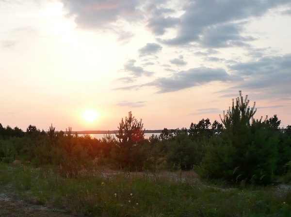 Meine Idee, vielleicht von den langsamen Halbmarathonis den einen oder anderen einzuholen, muss ich aufgeben, denn jetzt sind hin und wieder Gehpausen angesagt. Bei km 28 gibt es nochmal Versorgung und weiter geht’s Richtung Rosendorfer Kanal. Es folgt Km 30 und beim Blick über den Sedlitzer See beginnt so langsam der Sonnenuntergang. Hier kommt mir ein Kontrollradler entgegen. Auf Nachfrage kann ich ihm bestätigen, dass ich der Letzte bin. So schließt er sich mir an und wir haben eine nette Unterhaltung.