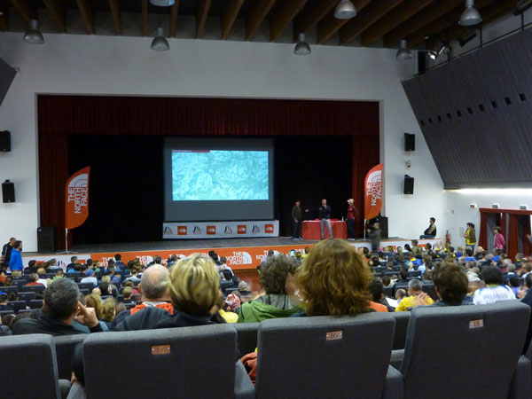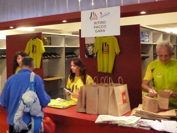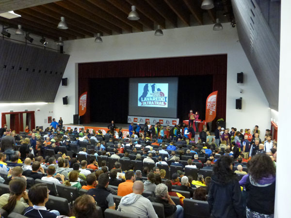 Um 18 Uhr beginnt im über 600 Personen fassenden Multifunktions-Zentrum das Briefing. Der Vortragssaal ist ideal für diese Zwecke und proppenvoll gefüllt. Als erstes werden die Änderungen beim LUT bekannt gegeben. Nichts ist hier konstanter als die Unkonstanz, heuer freilich aus denkbar gutem Grund. Mit der Startverschiebung wird die Ultra Distanz auf ca. 85 km und 3.500 hm verkürzt. Beim Cortina Trail verhält sich es etwas anderes, zwar wird auch hier nicht mehr auf Höhen über 2.000 m gelaufen und auf knapp 2.000 Höhenmeter verkürzt, dafür verlängert sich die Strecke auf 47,5 km. Zeit hierfür: 12 Stunden. Vom ursprünglichen Kurs verbleibt nur noch der Anfangsabschnitt über ca.12 km.