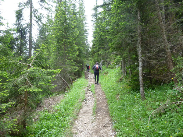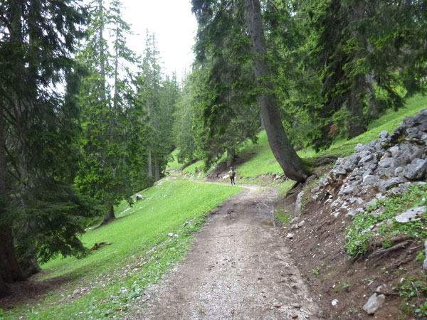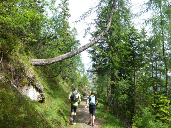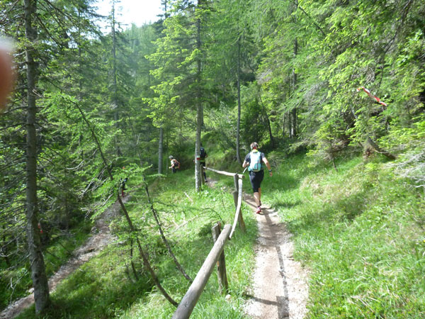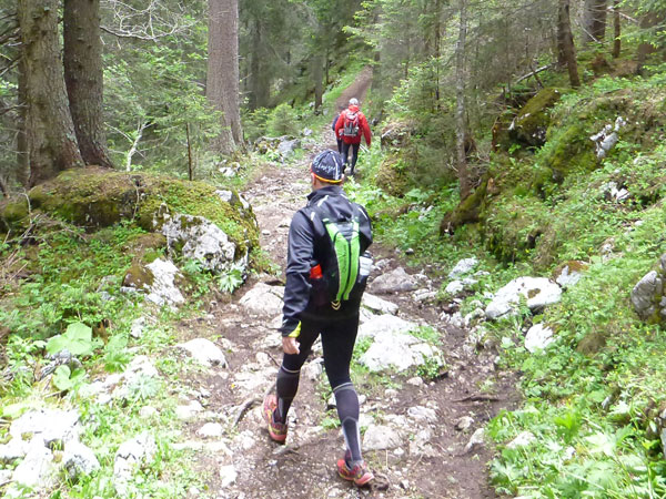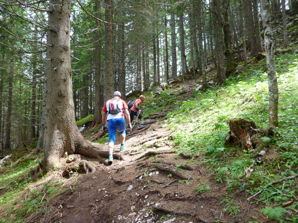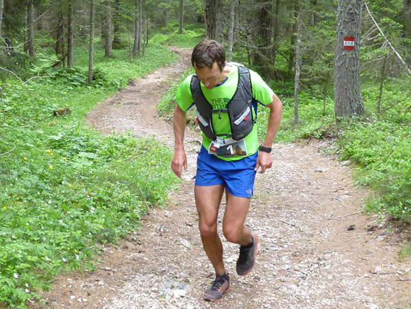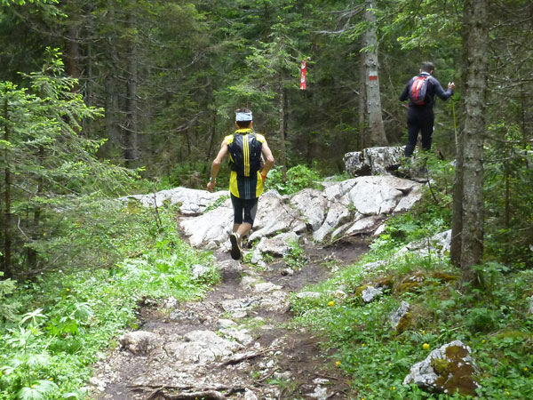 Kurz nach unserer Jausenstation werde ich bereits von Sébastien Spehler, dem führenden Läufer des LUT, überholt. Von hinten kommt lange nichts mehr, er hat einen riesigen Vorsprung. Wurzelig und trailig geht es noch einige Zeit für uns abwärts. Immer wieder passieren wir Wanderer, die uns ausnahmslos anfeuern.