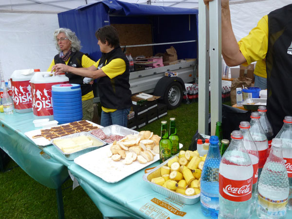 Danach wird kontrolliert, ob die kompletten Pflichtvorgaben eingepackt sind. Das wären: Getränke, Rettungsdecke, Pfeife, Regenjacke und Wärmebekleidung, alles wird genau inspiziert. Ob derjenige das dann auch im Rennen mitführen will, wird später nicht mehr kontrolliert und liegt wohl in jedem eigener Verantwortung. Nach bestandener Kontrolle werden Startunterlagen, ein funktionelles, hochwertiges Veranstaltungsshirt und noch einige Give-aways, wie eine Sonnenbrille ausgehändigt. Wie darf man denn das nun verstehen? Ich fasse es als gutes Omen auf.