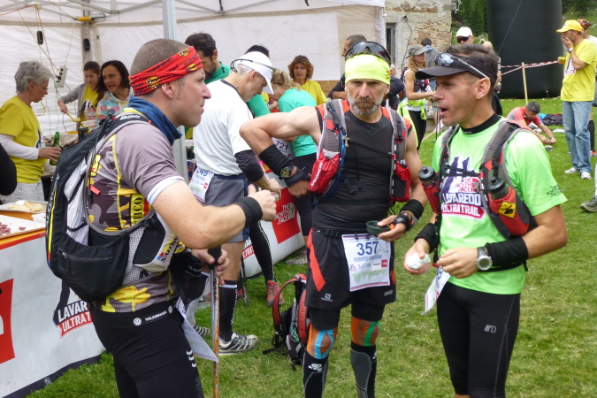 Nicht nur ich bin ziemlich erledigt, als ich nach nach 66,1 km um kurz nach 11 Uhr die Verpflegung am Posten Cimabanche erreiche. Auf der Wiese rund um die Pavillons fläzen ermattet die Läufer und versuchen wieder zu Kräften zu kommen und die krampfenden Beine zu beruhigen. Ich suche mir ein Schattenplätzchen auf einer Bank und tanke Cola.