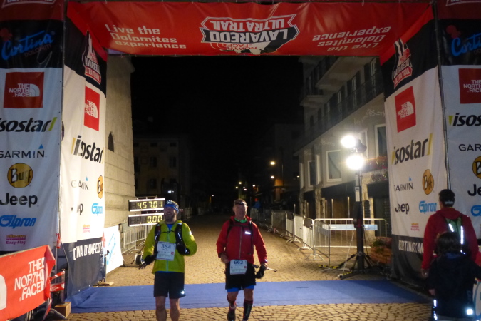 Zwei junge Japanerinnen beklatschen eifrig die Ankömmlinge, ein paar weitere Nachteulen warten im Ziel. Ansonsten umgibt mich einfach nur ….. Stille. So wirkt die Situation schon ein wenig irreal, als ich nach 28:49 Stunden erschöpft, aber innerlich ungemein glücklich durch den abgesperrten Zielkanal unter dem von Strahlern hell erleuchteten Zielbogen einlaufe. Mit mir kommen 750 und damit etwa zwei Drittel der 1.200 tatsächlich gestarteten LUT-Teilnehmer in diesem Jahr ins Ziel, davon allerdings nur 50 nach mir. Aber was soll es: Ich genieße die Situation, den stillen persönlichen Triumph, die tiefe innerliche Ruhe und hänge, einen warmen Zieltee schlürfend, den Erinnerungen nach, während weitere Läufer einsam eintröpfeln.