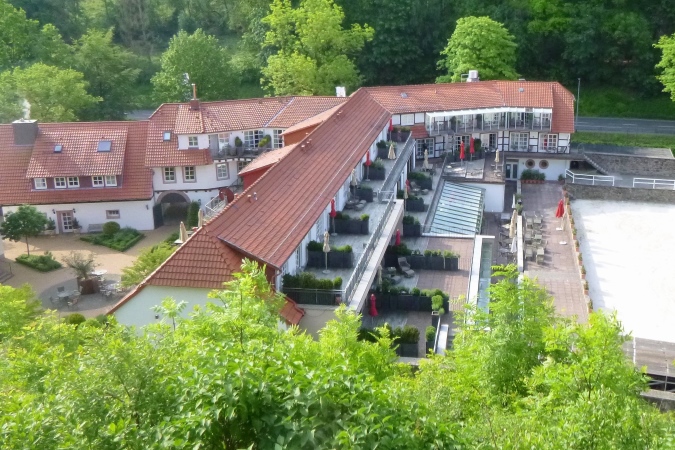 Beim Erreichen der Burgruine Hardenberg betreten wir so eine Stätte. Uralt, im gräflichen Besitz. Von oben erspähen wir die Luxusherberge und Nobelfutterstation mit Reit- und Golfplatz und vollem Eventkalender. Lassen wir aber rechts liegen, unsere Futterstation kommt nämlich im Rodetal, da wartet Stefan, guckt mir tief in die Augen und liest alle offenen Wünsche ab…
