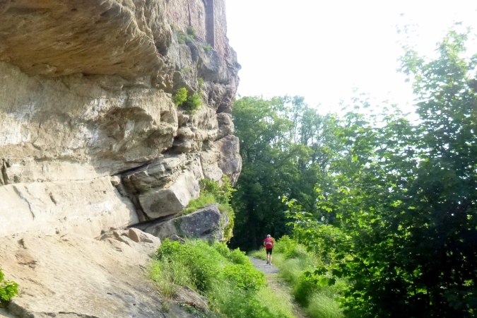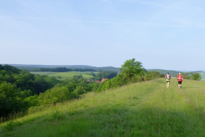 Sonnenaufgang über dem Leinetal. Die Leine kennt jeder Niedersachse, schließlich fließt sie durch seine Hauptstadt. Oder die Autofahrer auf der Autobahn des Grauens (A7) wegen der ständigen Hinweise. Sie formt ein langgestrecktes, breites Tal, das wir zweimal durchqueren. Ansonsten bewegen wir uns in den Bergketten erst östlich, dann westlich. Und hier ist der TRAIL am schönsten. Und am steilsten. Und fordert einfach alles.
