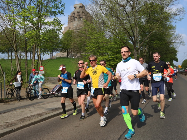 Der Marathon wird auf zwei identischen Runden gelaufen, Start ist beim Zentralstadion. Höhepunkte sind das Neue Rathaus, das Gewandhaus, die Messe und das Völkerschlachtdenkmal. Und natürlich der Zieleinlauf. Apropos: Spitzenzeiten werden in Leipzig nicht gelaufen. Das liegt aber nicht an der Strecke, sondern wie immer an den Läuferinnen und Läufern. Man verzichtet nämlich zugunsten regionaler Heros bewusst auf die Verpflichtung ostafrikanischer Kräfte, die, obwohl international drittklassig, 15 Minuten vor dem übrigen Feld her rennen würden.