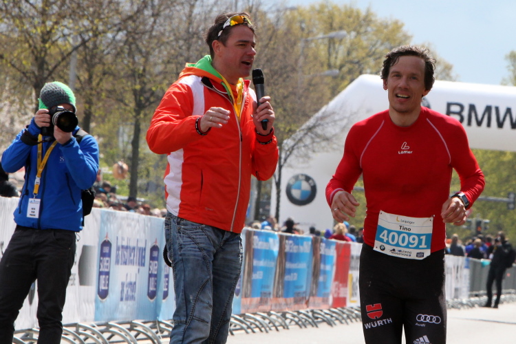 Man freut sich mit Marc Werner und Per Bittner, zwei Triathleten, die kurz nacheinander ins Ziel laufen und später mit der erst 20jährigen Laura Clart, die gleich ihren ersten Marathon gewinnt und sofort verkündet, dass das ab sofort ihre Lieblingsdisziplin ist. Ich kann mir nicht vorstellen, dass wegen einigen ostafrikanischen Läufern, die 25 Minuten schneller laufen, mehr Zuschauer an die Strecke kommen. Und bezüglich des Medieninteresses muss ich erleben, dass eine gute Fotoposition beim Zieleinlauf genauso hart erkämpft werden muss, wie bei anderen großen Rennen.