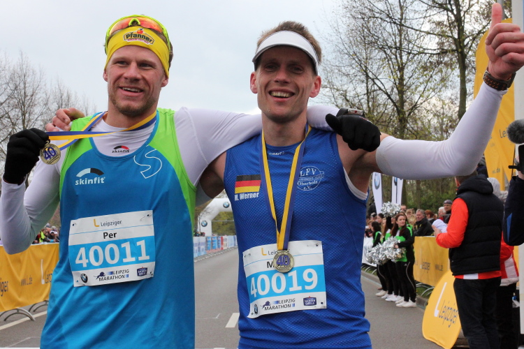 Kein Marathon-Jubiläum ohne Frank und Steffen Gottert, Leipziger Lauflegenden. Frank ist der Schnelle (Marathonzeit: 2:21), Steffen der Erfolgreiche (Marathonmeister der DDR 1969). Mit dem Leipziger Marathon sind sie eng verbunden, die aktiven Teilnahmen haben sie nicht gezählt. Frank hat alle Einzelheiten, Histörchen und Anekdoten aus der Geschichte des Laufs zusammengetragen und in dem Buch „Marathon-Mekka Leipzig“ veröffentlicht. Man kann es direkt bei Frank Gottert per Mail bestellen: frankgottert@gmx.de