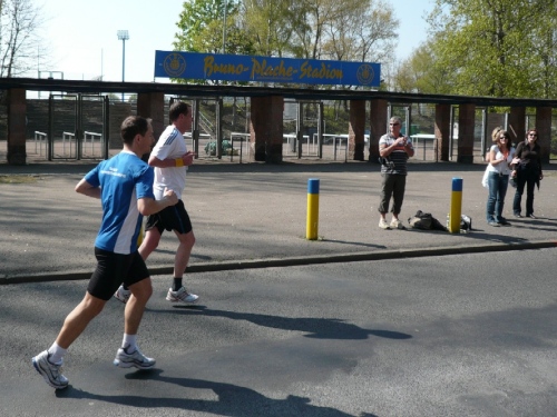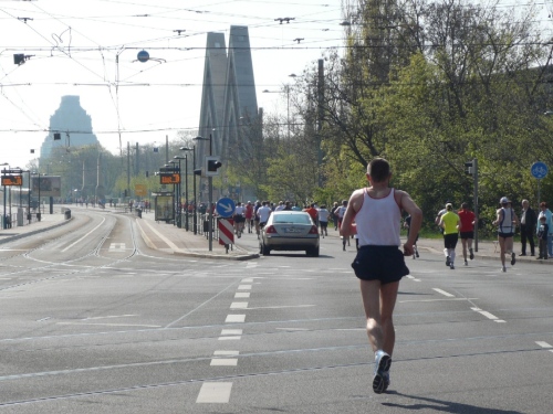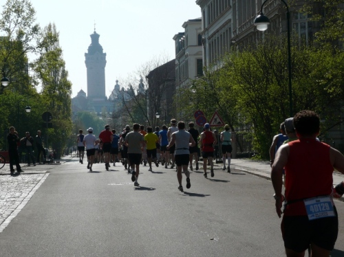 Genau um zehn Uhr haut man uns dann mit zwei, drei Startpistolen au die Strecke. Auf geht’s zum 34. Mal durch die Messestadt. Damit ist der Lauf einer der ältesten in Deutschland. Und er ist sehr beliebt im Osten. So rangiert in der m4y-Umfrage nur der Kultlauf über den Rennsteig ganz vorne vor Leipzig.