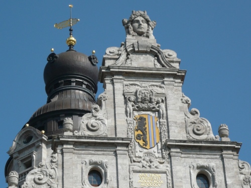 Im Gegenlicht der Sonne sehen wir kurz danach den 114 Meter hohen Rathausturm. Das Neue Rathaus dominiert hier das Stadtbild. 1899 erfolgte die Grundsteinlegung. Nach rund sechs Jahren Bauzeit wurde es unter König Friedrich August III seiner Bestimmung übergeben. Und eine Laufbahn gibt es da auch. Zwischen dem angebauten Stadthaus und dem Rathaus gibt es einen Zwischenbau und diese Verbindung heißt im Volksmund Beamtenlaufbahn. Ob da gelaufen oder eher mehr Radfahren betrieben wird, da müssten wir halt den Herrn OB fragen.