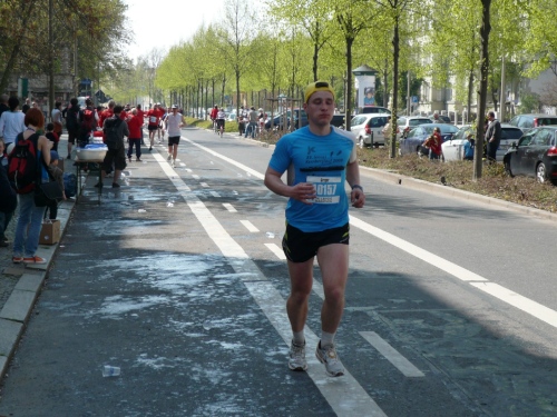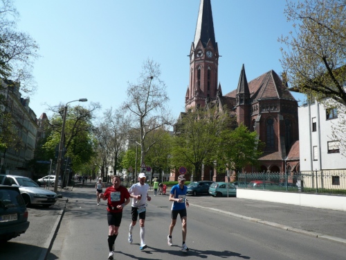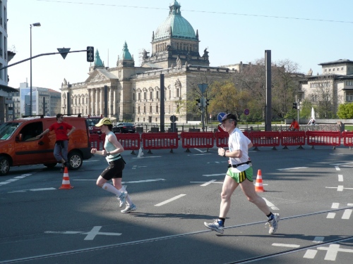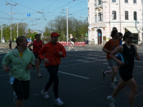 Es geht nach einer Linkskurve Richtung Hauptbahnhof. Am Waldplatz sehen wir linkerhand ein schön renoviertes Palais. Von einem Mitläufer höre ich, dass der Zeitläufer für 3.45 Stunden uns auf den Fersen ist. Es sind einige Pacer organisiert worden. Wer also eine bestimmte Zeit erzielen will, der kann sich an den entsprechenden gerne anhängen.