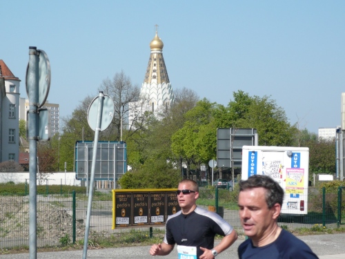 Immer noch auf der Prager Straße ist rechts die Russische Gedächtniskirche zu sehen. Sie ist eine russisch-orthodoxe Kirche und dient dem Gedenken an die 22000 russischen Soldaten, die während der Völkerschlacht 1813 um Leipzig gefallen sind.