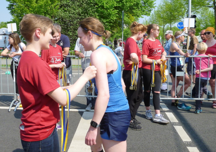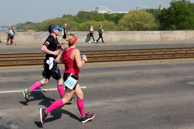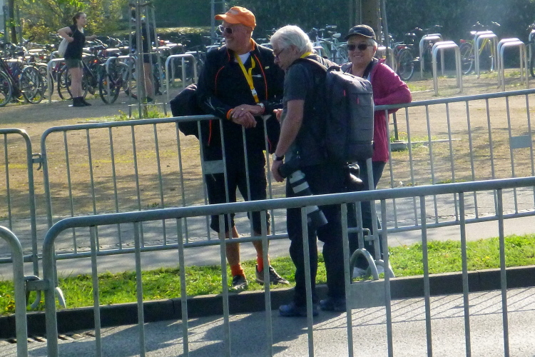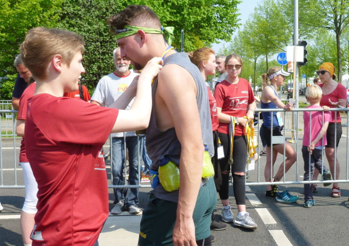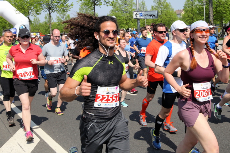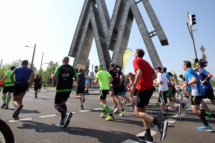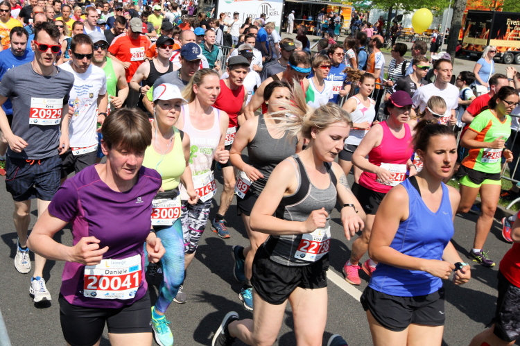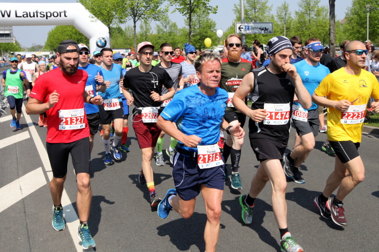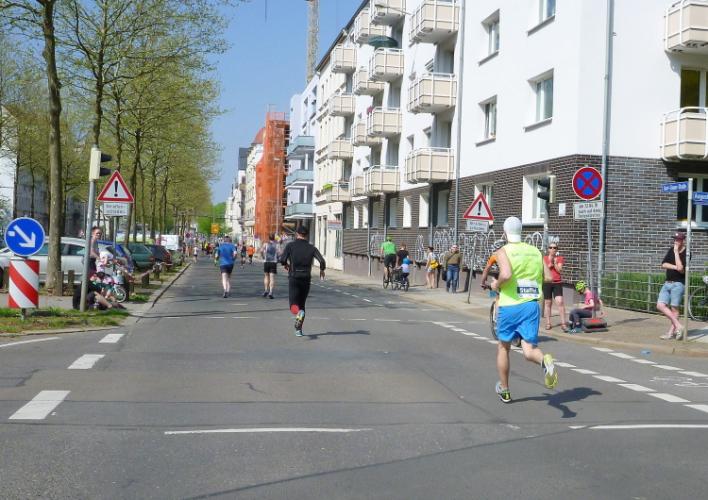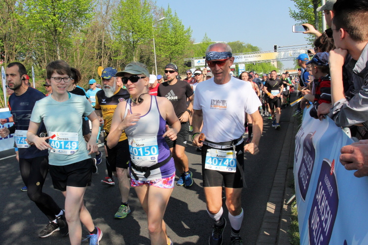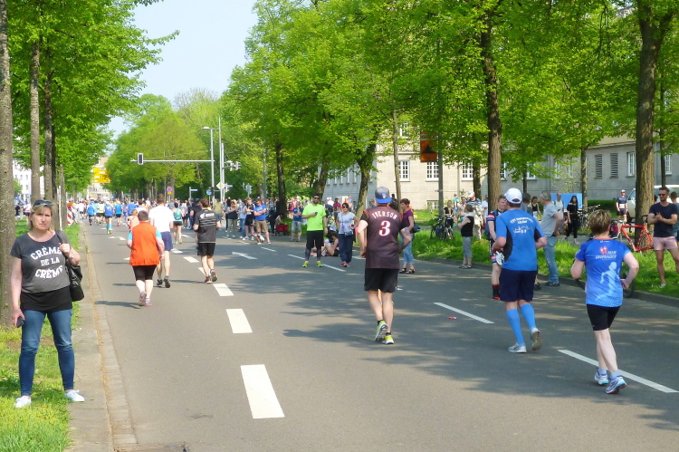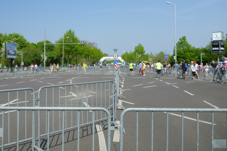 Der Wetterfrosch sagt für heute wieder bestes und warmes Wetter voraus – für die Zuschauer. Für uns bedeutet das leichte Laufklamotten, im Rennen Schatten suchen und trinken, was geht. Bis an die 25 Grad sollen es werden, ohne Wolken am Himmel. Etliche Freunde, die ich schon lange nicht mehr gesehen habe, treffe ich hier, die Zeit vergeht. Vor unserem Start gehen die Inliner, die Rollstuhlfahrer und Inliner auf die Strecke.