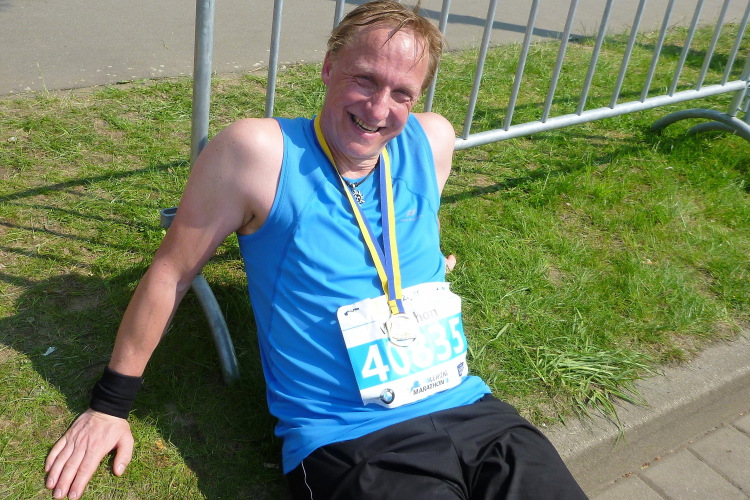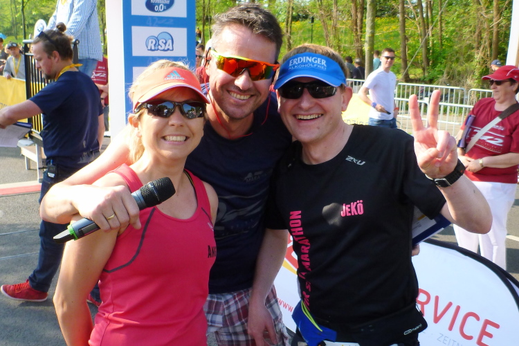 Kilometer 40, letzter Wasserguss für mich, dann packe ich die restlichen Kilometer an. Mit „Wolle“ Matthias Wollmann duelliere ich mich noch im Zielkanal. Den längeren Atem hat er beim Zieleinlauf, ist aber dank Nettozeit sowieso vor mir und zwei Klassenplätze besser. Mir ist’s wurscht. 3.59.26 Stunden weist die Liste aus für mich, damit geht es auf AK-Platz zwölf. Damit bin ich einverstanden.