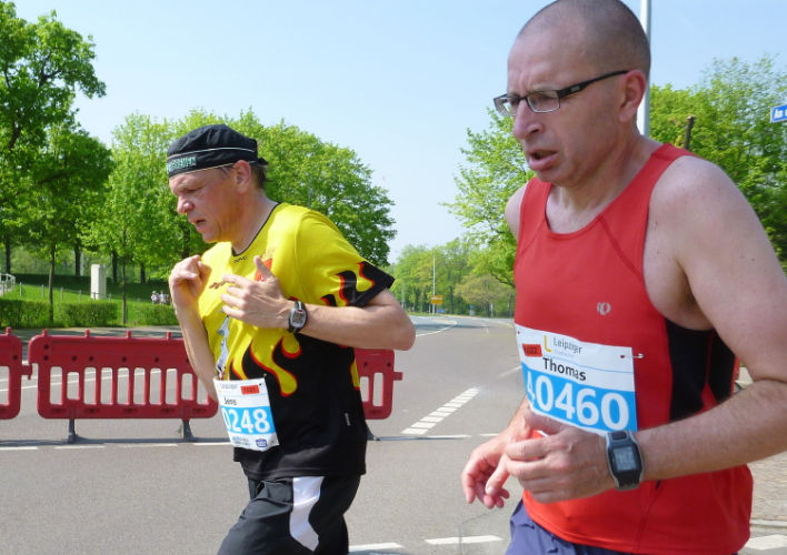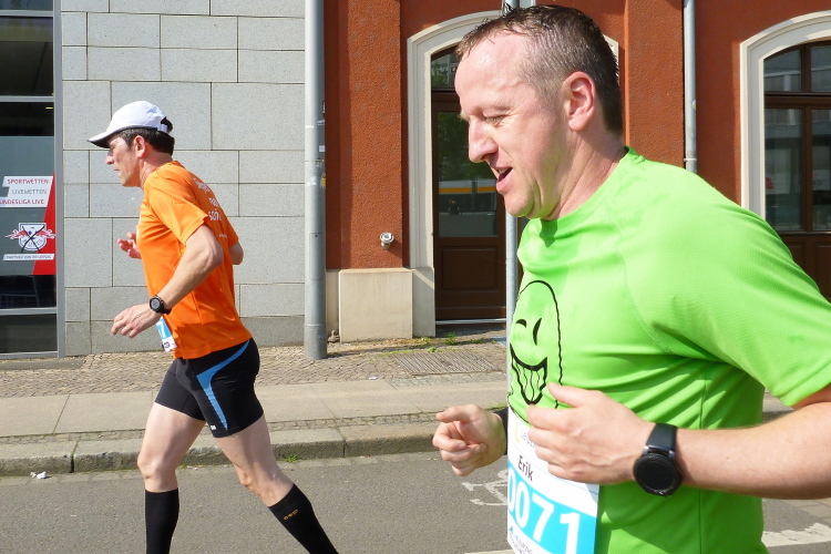 Es läuft gut, ich bin nur am Überholen und deshalb hochzufrieden. Meine Arbeit als Fotograf habe ich deutlich reduziert, doch einige passende Schnappschüsse müssen sein. Thomas Unger aus dem thüringischen Arnstadt (eine schöne Altstadt, davon konnte ich mich letztes Jahr überzeugen) hatte noch nicht das Glück, in einer Bildgalerie auf Marathon4you aufzutauchen. Dem soll ich abhelfen. Dann schickt er mich dann weiter.