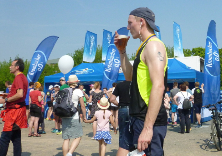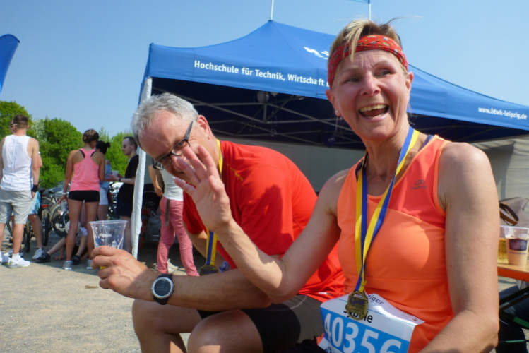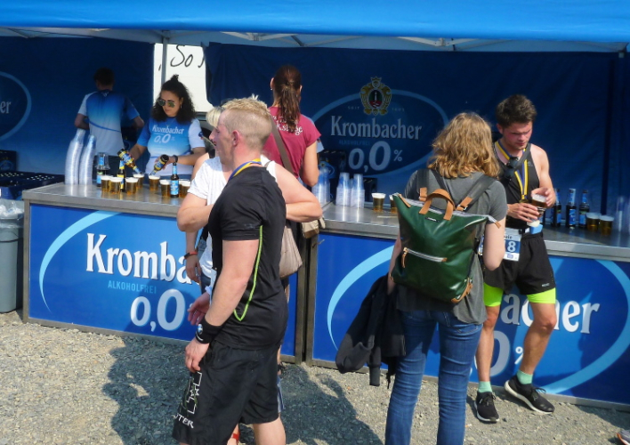 Der kürzeste und auch lohnendste Weg im Verpflegungsbereich ist der zum Bierstand. In der Leipziger Volkszeitung habe ich gelesen, dass der Sachse im Jahr über 200 Liter Bier trinkt, der Bayer knapp 180. Da will ich mithelfen, den Abstand zu verringern. Ich gehe erst nach vier Bier von dannen. Was es noch an Zielverpflegung gegeben hat? Da müsst ihr andere fragen, ich weiß es nicht.