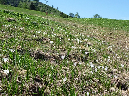 Niemand lacht jetzt, es ist ein harter Aufstieg, aber einer der schönsten der Welt. Zarte Krokusse wachsen auf dem Grau des Winters. Ich stopfe mir Schnee unter die Kappe und lege mich auf die kühlenden Schneefelder.