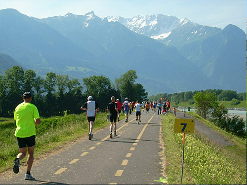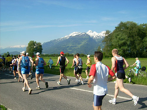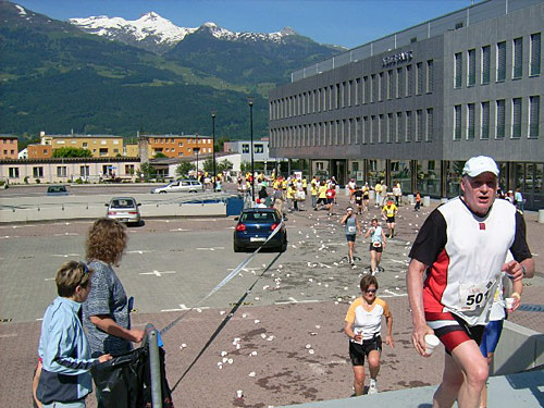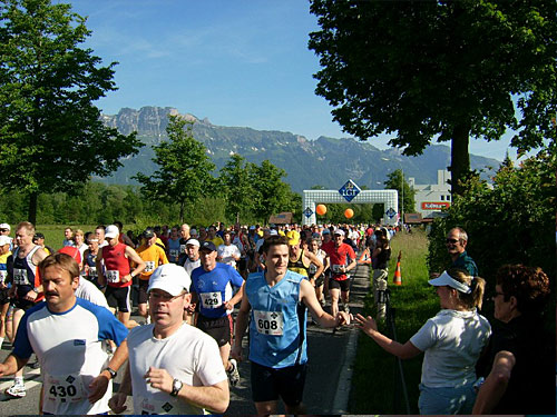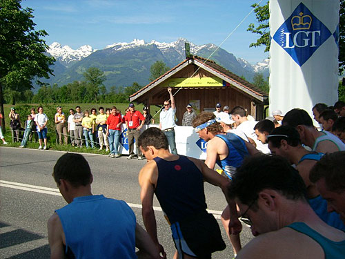 Dann fangen wir mit den ersten Informationen zum Wettkampf an. Die Ausschreibung und andere nützliche Dinge können auf der Website des Veranstalters eingesehen werden. Da kann auch eine Online-Anmeldung mit direkter Bezahlung bis wenige Tage vor dem Rennen erfolgen. Oder man lässt sich die Ausschreibung per Post schicken. Das Startgeld in Höhe von 75 CHF/50 EUR beinhaltet neben der Verpflegung und dem Rücktransport zum Start noch ein Funktionsshirt und eine wertvolle Gabe von Swarovski. Ein Ausdruck der Urkunden via Internet ist wieder eingerichtet. Eine Nudelparty ist nicht vorgesehen, die Teilnehmer können aber aus mehreren Restaurants wählen, wo es eine Nudelmahlzeit mit einem Getränk zu einem günstigen Preis gibt. Als Berechtigung hierfür sollte die Startnummer genügen, soweit ich mich dazu erinnern kann. Am Freitag zuvor können bei der Firma Ospelt in Bendern die Startunterlagen abgeholt werden. Hier ist auch der Start des Rennens.