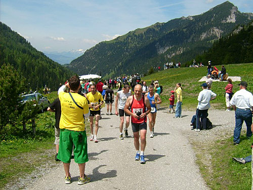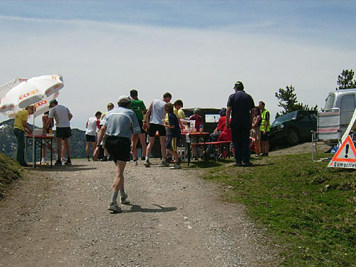 Bei Kilometer 20 (Silum) finden wir erneut eine V-Stelle. Später erreichen wir den ersten Kulminationspunkt, die Silumer Kulm in einer Höhe von 1539 Meter. Wir haben jetzt auf gut 10 Kilometer 1100 Höhenmeter bezwungen. Das sonnige Wetter und die gute Fernsicht macht den Bewerb zum Vergnügen. Man merkt bereits die Höhe, denn die Luft ist kühler als im Tal.