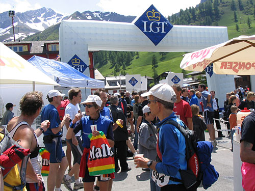 Der letzte Kilometer gestaltete sich als eine einzige Bergab-Raserei. Über einen Feldweg und einen teilweise recht abenteuerlichen Trampelpfad gelangt man auf die asphaltierte Strasse von Malbun, wo man von vielen begeisterten Zuschauern empfangen und vom Zielsprecher ins wartende Ziel geleitet wird.