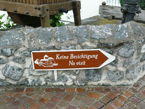 Von unten fällt schon seit einiger Zeit, immer wieder mal mein Blick auf Schloss Vaduz, das mehr wie eine Ritterburg aussieht und eine der Hauptattraktionen und das Wahrzeichen von Liechtenstein darstellt. Beim Schauen von außen wird es auch bleiben, für uns sowieso, aber auch für alle Besucher des Fürstentums. Auf einem Schild am Wegesrand kann ich lesen: Keine Besichtigung! Der Fürst will seine Privatsphäre wahren und seine Ruhe haben. Weil hier aber auch nicht hinter jedem Eck ein Paparazzi lauert, kann er sich relativ unbeschwert bewegen, auch ohne Bodygard und Polizeischutz.