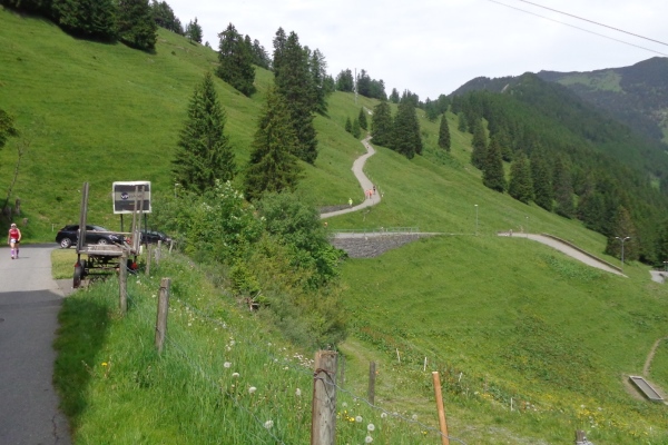 Um meine Zeit kümmere ich mich nun gar nicht mehr. Ich bin froh, den Sturz ohne bleibende Schäden überstanden zu haben, meine Blessuren werden bald verheilt sein. Auf den letzten Kilometer hat man von allen Seiten einen Blick auf Malbun. Nach km39 kommt noch einiges an Höhenmetern dazu. Einer ist schneller, den lasse ich vorbei. Ein anderer winkt mich vorbei. Ab km40 geht es nicht mehr bergauf, weitgehend flach bis km41 und dann runter in den Ort, die letzten 400m auf Asphalt.