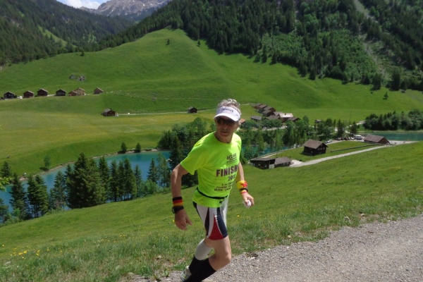 Mike erwartet mich vor der Ziellinie, der ist schon seit 2 Stunden geduscht. Er wird froh sein, dass sein Chauffeur doch noch ins Ziel kommt. Anerkennende Zurufe und Applaus aus dem Alpenhotel-Gastgarten begleiten mich die letzten Meter, und durch!