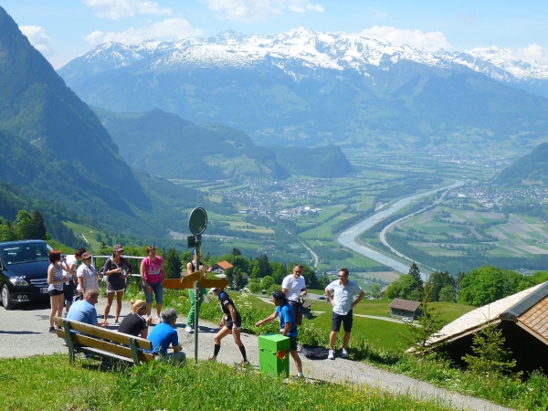 Wir erreichen per Auto die Grenze zwischen Österreich und Liechtenstein und stellen fest, dass diese von der Schweiz bewacht wird. Oder eben nicht. Dank Schengen-Abkommen kann man ohne Kontrolle einreisen. Auffallend die wirklich gepflegte Landschaft und die schönen Häuser. Leider sieht man recht wenig von den 38.000 Liechtensteiner Einwohnern. Die genießen sicher das schöne Wetter. Gefühlt ist hier die Dichte an teuren Autos extrem hoch. Auch Stretch-Limousinen sind in. Zur Geschichte Liechtensteins empfehle ich Joe’s Laufbericht aus dem Jahr 2012.