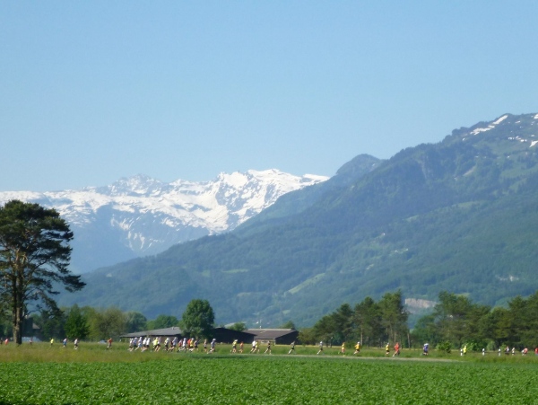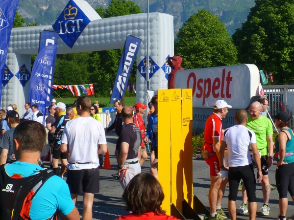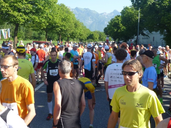 Den Startschuss gibt der einheimische Alpin-Skistar Tina Weirather. Bei 653 Teilnehmerinnen und Teilnehmern, die schnell die Startlinie passieren, kann man sich auf eine Bruttozeitnahme beschränken. Vor uns eine laut Trikotbeschriftung bekennende Veganerin, die wahrscheinlich froh ist, dass sie bald von diesem furchtbaren Ort wegkommt. Sie wird uns bis ins Ziel begleiten.