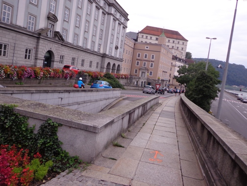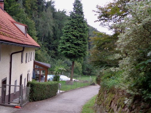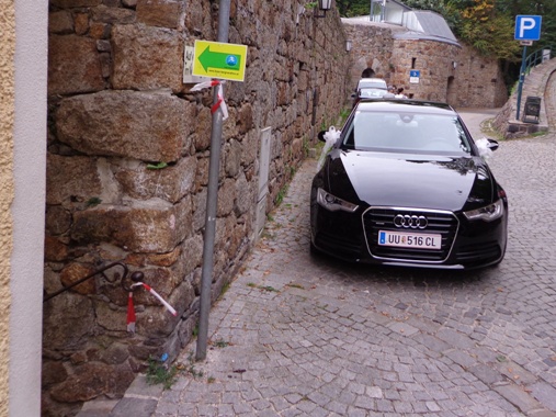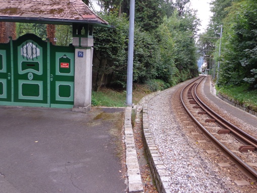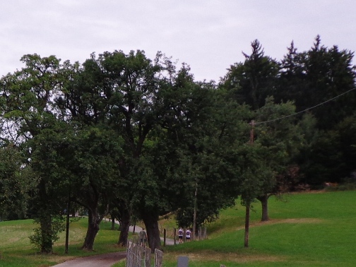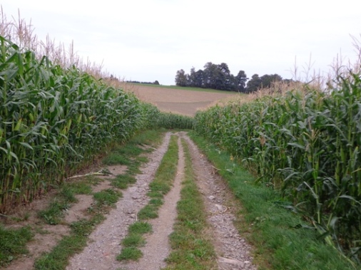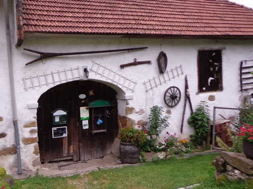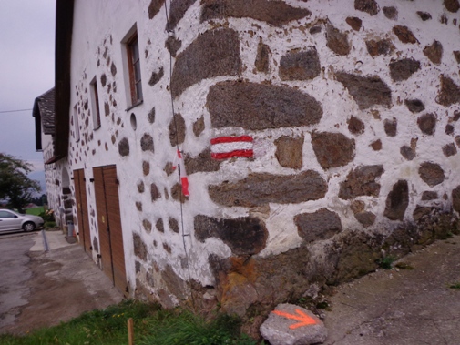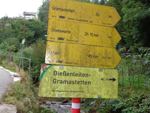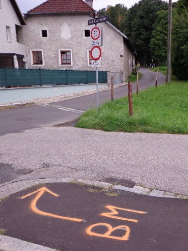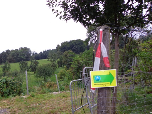 10h55 Mittertreffling, ca. 18km. Nach dem Überqueren A7 laufen wir auf der Trasse der Pferdeeisenbahn. Ab 1836 fuhr die Bahn von Linz nach Budweis. In erster Linie um Salz vom Salzkammergut über das Böhmische und von da ab auf der Moldau bis nach Hamburg zu transportieren. 1 to Salz pro Gespann. Entgegenkommende Reisende mussten ihren Wagen aus den Schienen heben, der Gütertransport passierte, und der Personenwagen wurde wieder auf die Schienen gestellt. Weiter ging es.