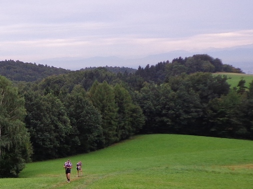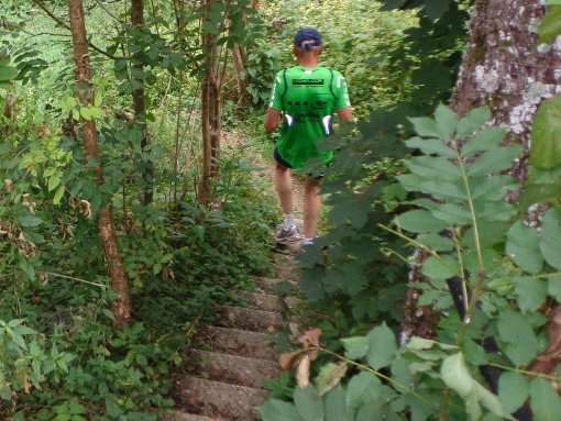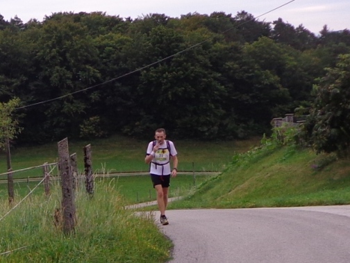 1km vor dem höchsten Punkt der Strecke wird es wurzelig und steinig. Meine gesamte Aufmerksamkeit gehört dem Boden! Die Beine runter läuft mein Schweiß, meine Socken sind völlig durchnässt. Wäre ich durch die Donau geschwommen, ich wäre nicht weniger nass. Gut dass es hier kühler ist als in der Stadt.