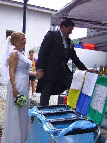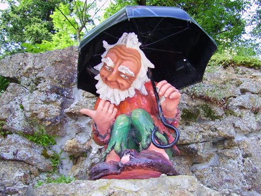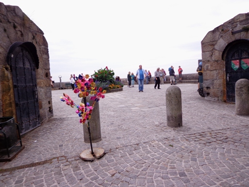 Ein kurzer Umweg führt mich an einem Wasserhahn vorbei, alles andere gibt es später. Der Parkplatz ist gut besucht, einige Busladungen Ausflügler sind hier. Außerdem finden gerade 2 Hochzeiten statt, ein Brautpaar lässt sich an der Labestelle blicken, ist aber eh schon satt.