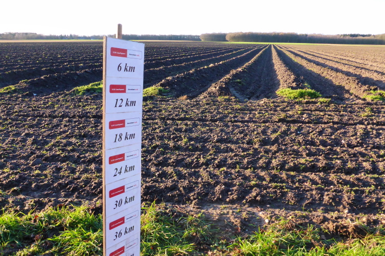 Eine Laufrunde beträgt 6 Km. Da könnte man statt Eigenverpflegung auch Wechselkleidung deponieren. Nach jedem Kilometer wird die gelaufene Distanz angezeigt. Das Ermitteln der absolvierten Kilometerzahl ist also einfach, man muss nicht die Runden zu zählen und muss nicht multiplizieren. Das ist gut, denn der IQ eines Marathonläufers sinkt angeblich um 10 Punkte während eines Laufes.
